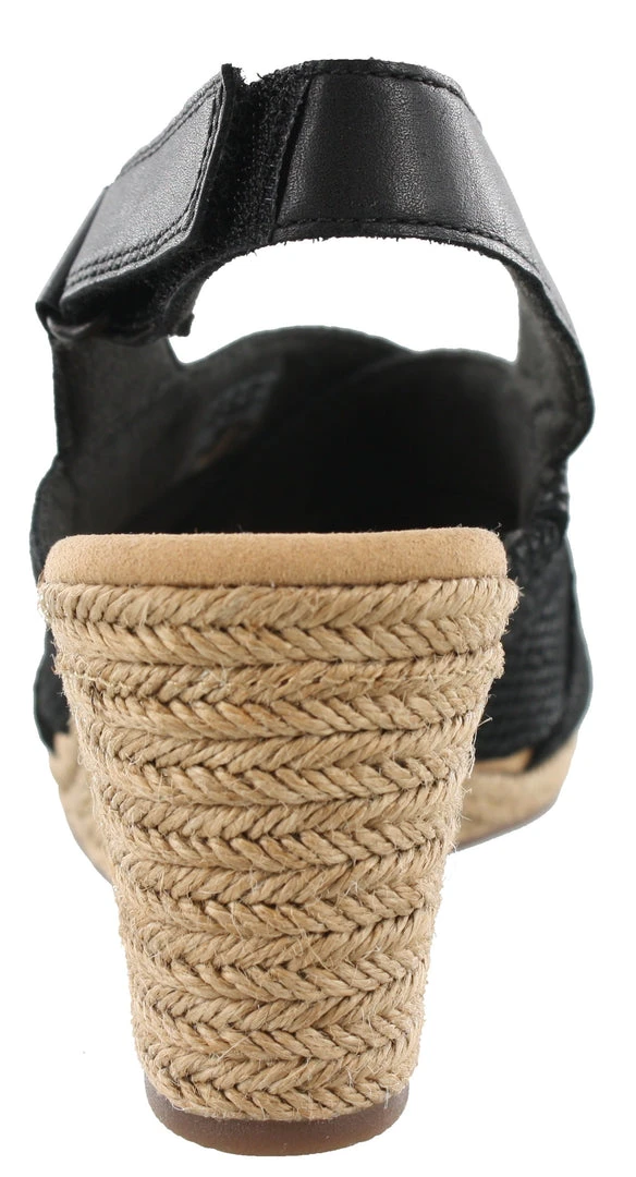 A wide diversity of textures and materials allow these comfortable wedges to stand out from the crowd. Its strappy upper is made from full grain leather and soft suede, and its jute-wrapped wedge adds extra summery appeal. A rubber outsole boosts traction and stability while an EVA midsole keeps it lightweight.These Clarks wedge sandals also offer Layers of Cushion Soft padding with an impact-reducing OrthoLite footbed reduce the shock of each step it takes. Adds interest to everything from denim shorts to sundresses.