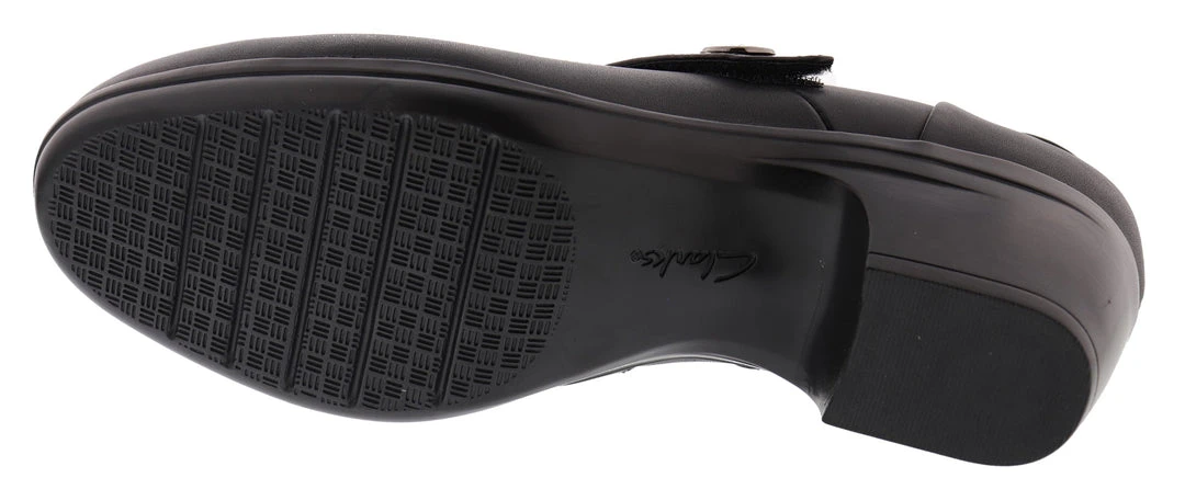 Add an extra touch of refined appeal to your office-ready ensemble with the Emily Reaya pump from Clarks. This modern Mary Jane features a full grain leather upper, a short block heel and a hook and loop closure that allows for a convenient, all-day fit comfort style comes with Ortholite footbed for impact absorption and moisture reduction.