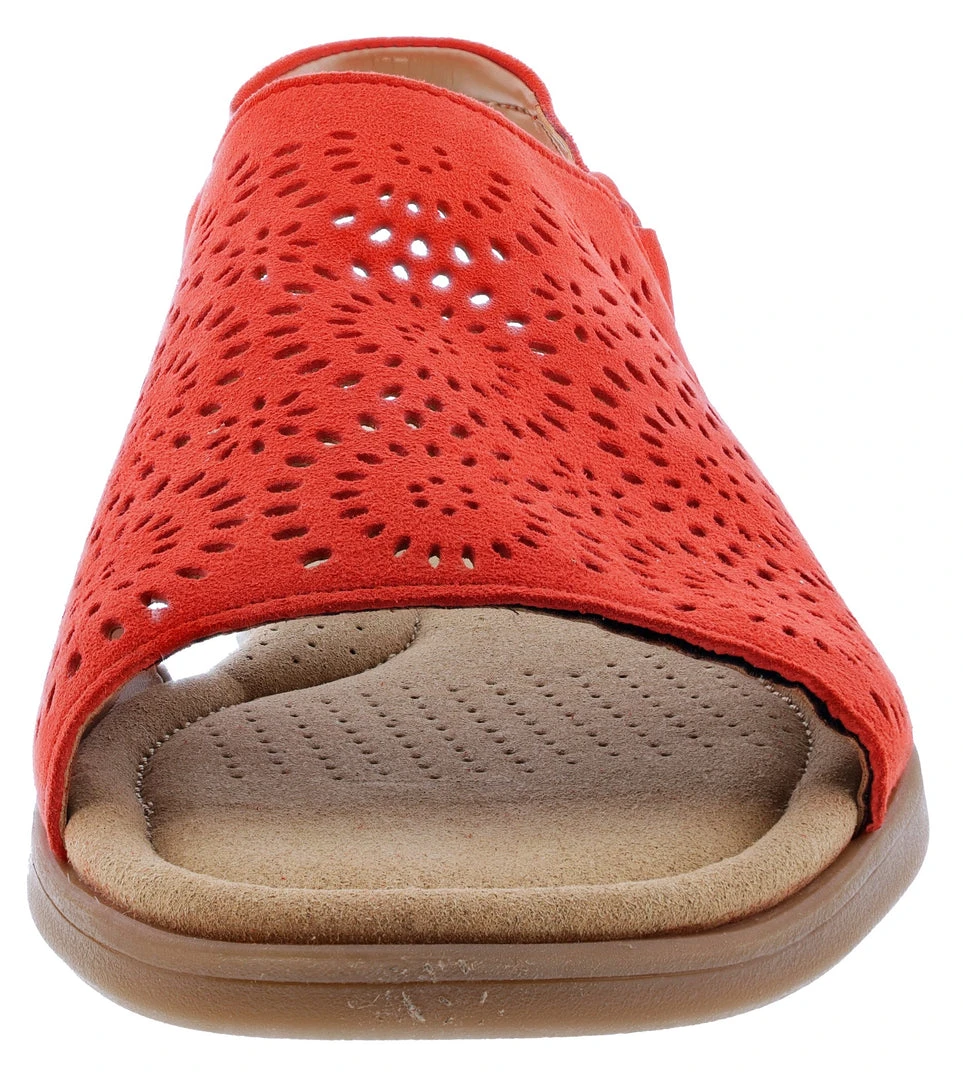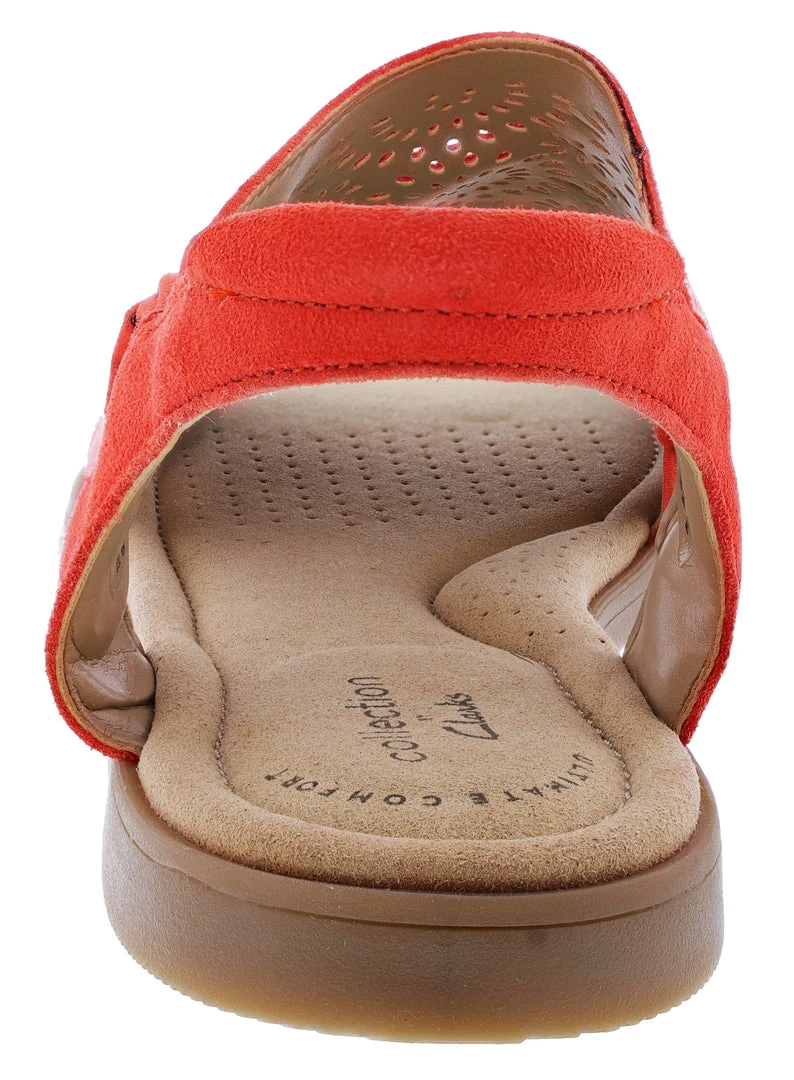 The Reyna Swirlย comfortable dressy sandalsย from Clarksย are a fashion-forward, full coverage flat slip-on sandals with unrivaled comfort credentials and stand-out design details.ย