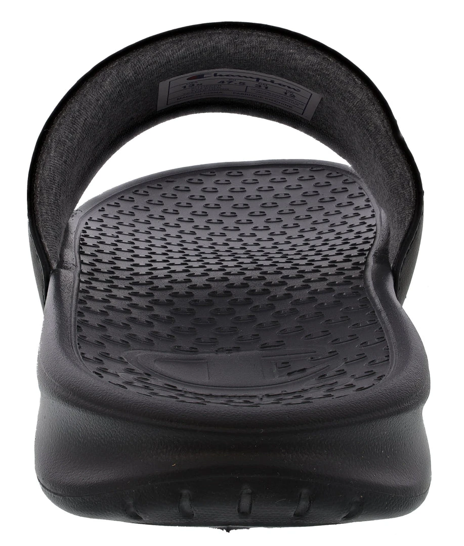 Lounge in comfort and style when you wear the Champion Men’s Super Slide Club Slides. These champion slides for men feature a jersey-fabric lining on the upper band, for a soft, breathable wear. The polyurethane outsoles are ergonomically designed to support the contours of your feet, keeping you comfortable with every step. The iconic Champion logo and embossed wordmark give a touch of swagger to your look.