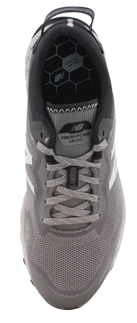 We gave our well-loved New Balance Arishi mens wide width running shoes tough technology to prepare it for the trails. New Balance wide width running shoes features the same soft comfort and versatile performance with features like an AT Tread dual lug outsole and a Toe Protect reinforced toe tip to help protect toes against rocks and debris. Plus, New Balance shoes wide width no-sew material application on the upper helps keep the fit feeling lightweight.