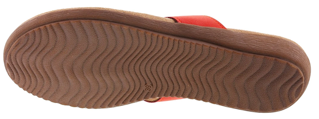 Dainty thong sandal featuring multicolored wooden barrel beads surrounded by rhinestones on a geometric cut out upper with two sides flower design. The soft and cozy foot bed along with the flexible sole assures all day comfort.