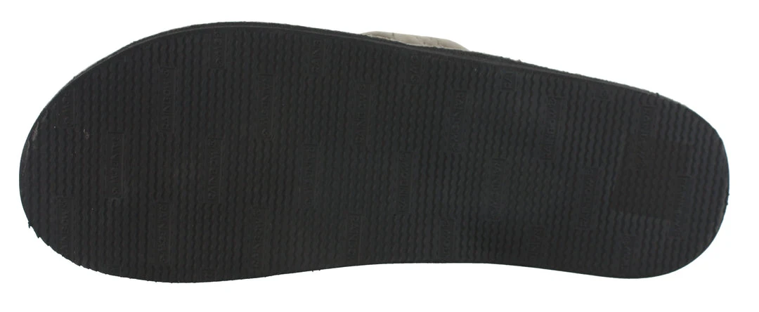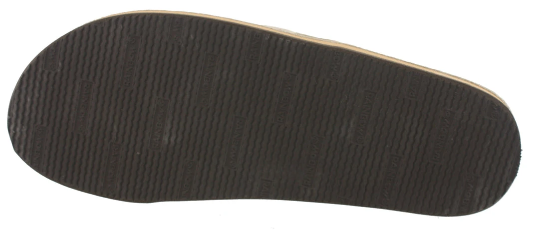 The single layer rainbow men sandals is made with top grade nubuck leather; the top sole is embossed with the Rainbow logo. The strap on the Rainbow sandals mens flip flops, also nubuck leather; is double stitched, and the nylon toe piece is secured with a box X stitch, all using bonded nylon thread.
