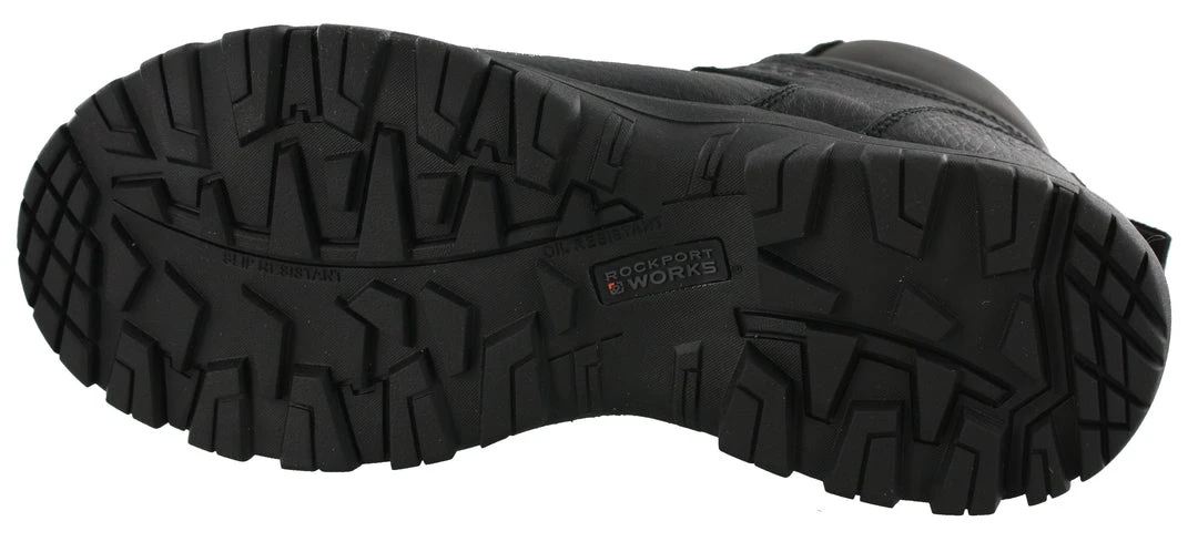 Rockport Lembert Steel Toe Wide Width Work Industrial Boots features a dual density cushion removable insole. This construction boots for men has a rubber lugged Trail Outsole for a long lasting sole. Mens black leather workboots is electrical Hazard Protection, Abrasion Resistant Heel, and Toe Guards. Order your men’s workboots today!