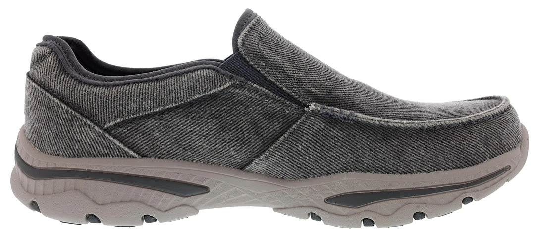 Canvas means comfort and cool, laid-back style in Skechers Relaxed Fit: Creston – Moseco. Soft woven fabric upper in a slip-on casual comfort moc toe loafer with Air-Cooled Memory Foam insole.