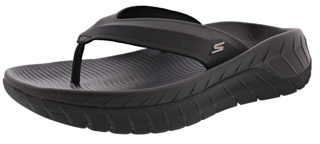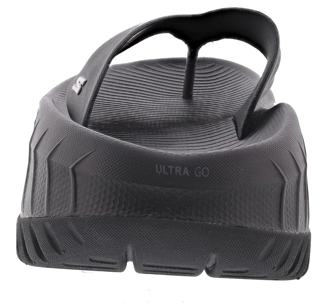 Cool down in athletic style and performance comfort with Skechers GO Recover Sandal. This thong sandal features a Goga Mat cushioned footbed and lightweight ULTRA GO cushioning.