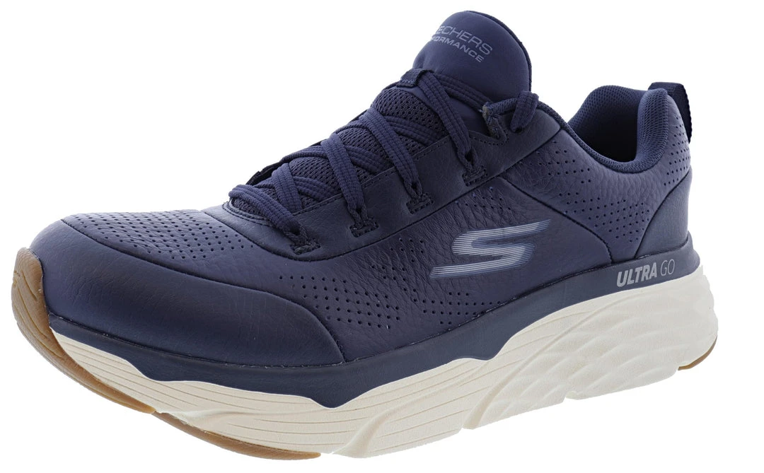 Make comfort a priority on every walk or run with the Skechers Max Cushioning Elite- Lucid. This shoe features a premium leather upper with an ULTRA GO cushioned platform and Air-Cooled Goga Mat insole.