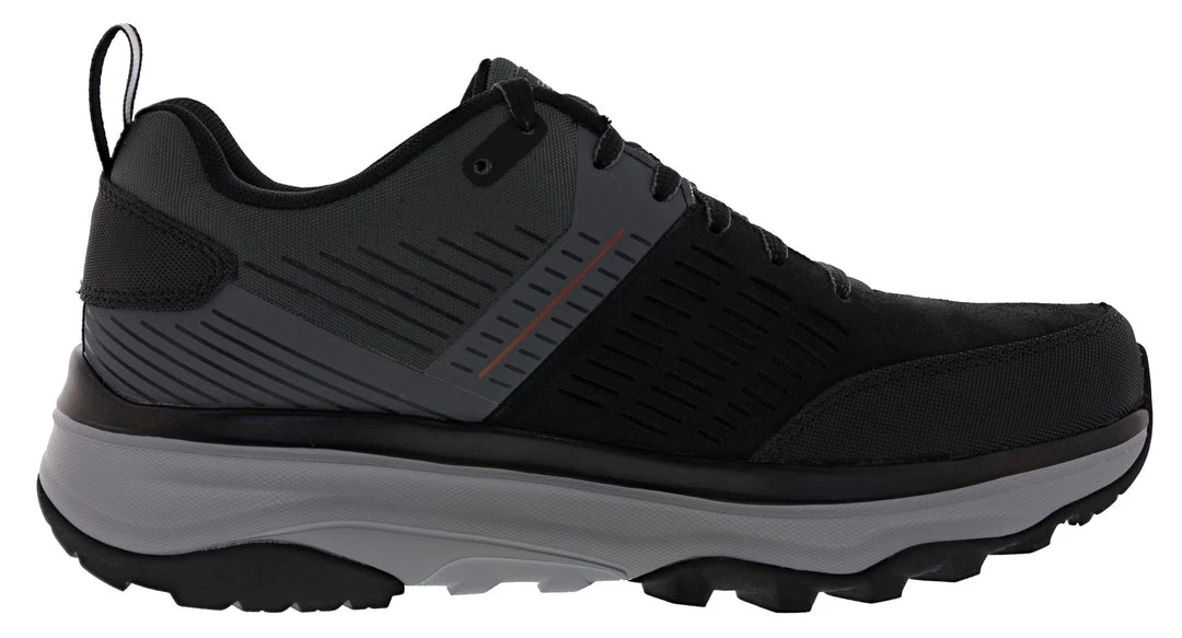 Add more cushioning between you and the tough terrain with the Skechers Max Cushioning Trail. A cushioned comfort trail hiking and trail running design on an ULTRA GO® cushioned platform. Water repellent suede and mesh fabric upper.