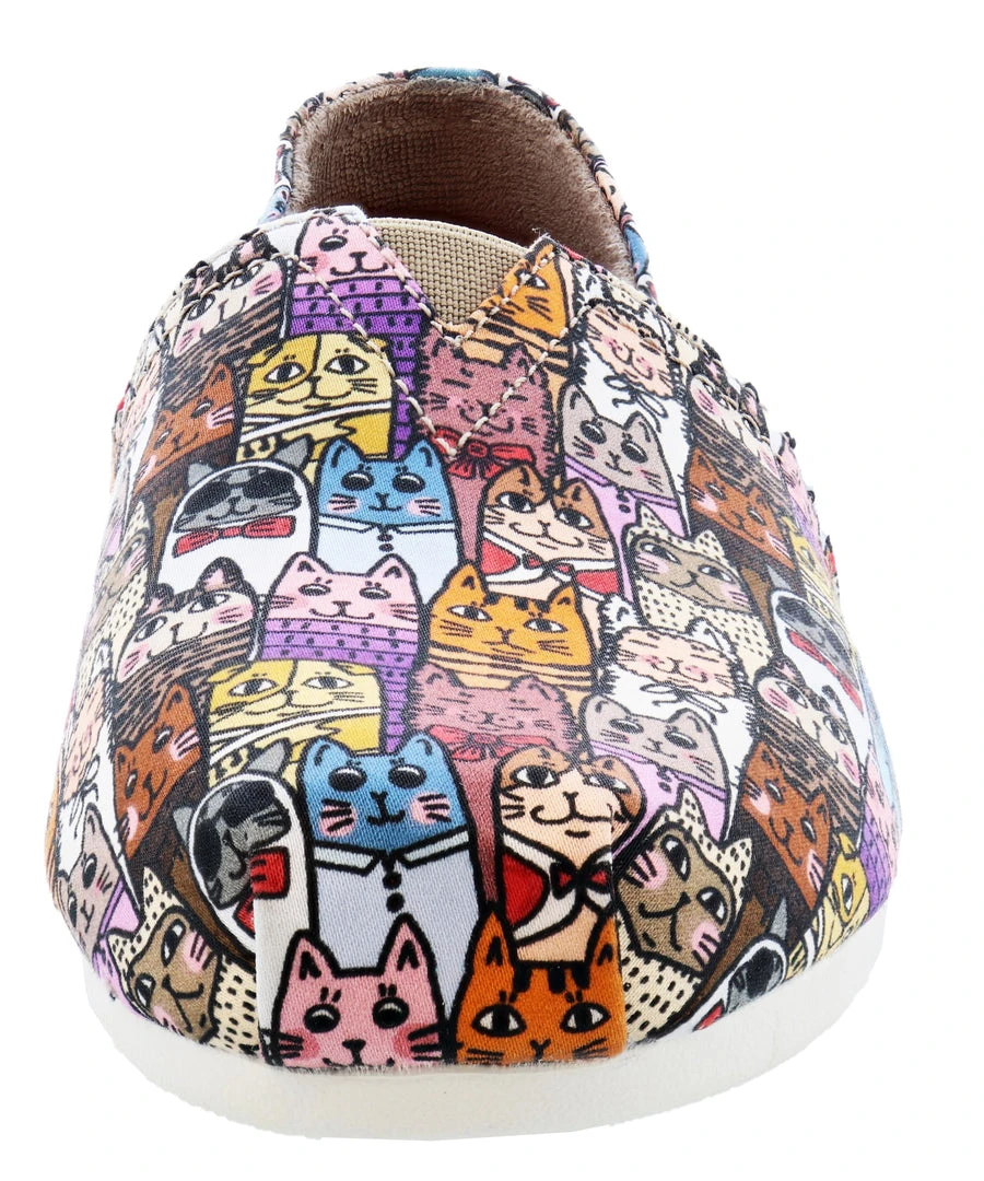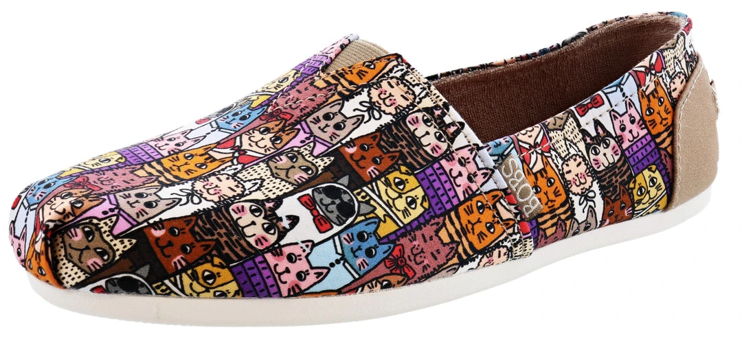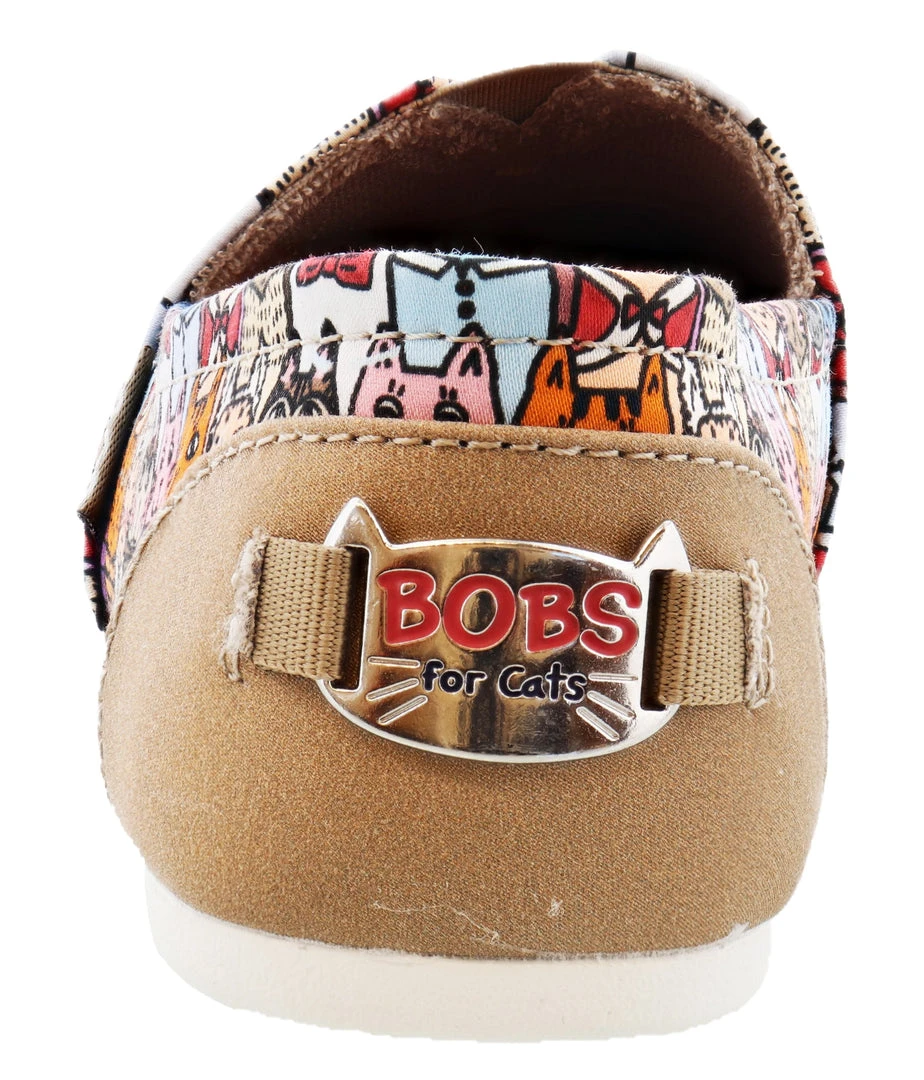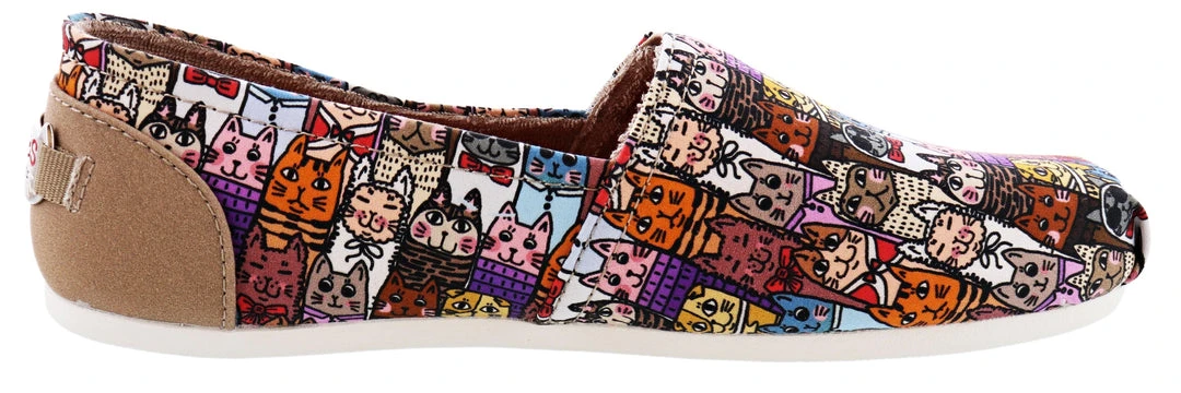 Get the model of purrfectly posh style with the Skechers BOBS for Cats BOBS Plush – Uptown Kitty shoe. Soft woven fabric upper with printed cartoon ‘fashion cats’ in a slip on casual comfort alpargata flat with Memory Foam insole.