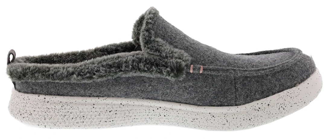 - Slip-on low backed loafer-style casual slipper with a moc toe