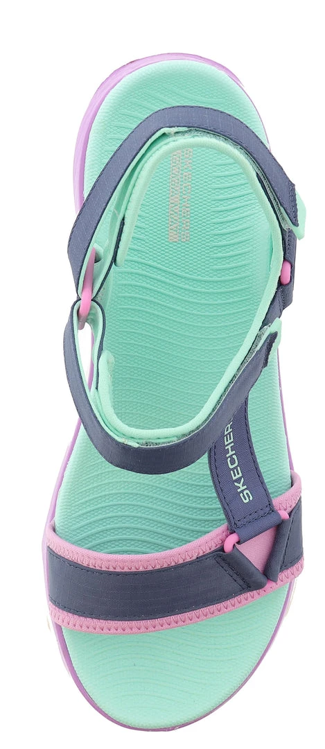 Comfort and sporty style will put a spring into your step with the Skechers Max Cushioning – Swag sandal. A cushioned comfort walking adjustable river style strappy sandal design on an ULTRA GO cushioned platform.
