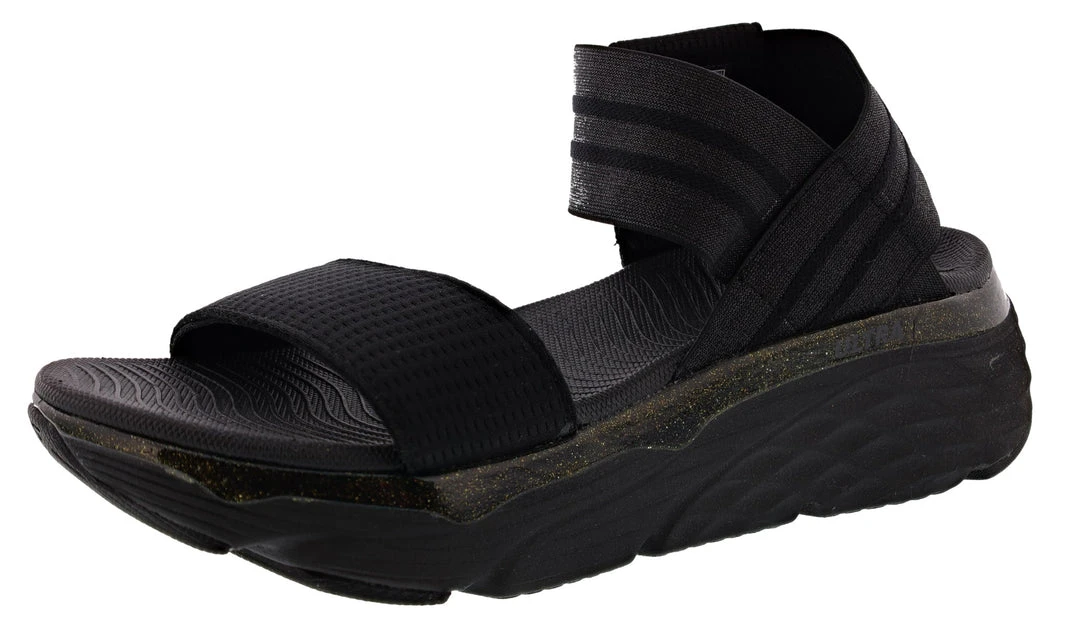 Skechers Max Cushioning Swerve Strappy Sandals. These sandals Skechers an ankle strap slide sandal features a cushioned Goga Mat comfort insole. Skechers Max Cushion sandals has a ULTRA GO cushioned midsole. Order your Skechers Goga Mat ladies sandals. Free shipping!