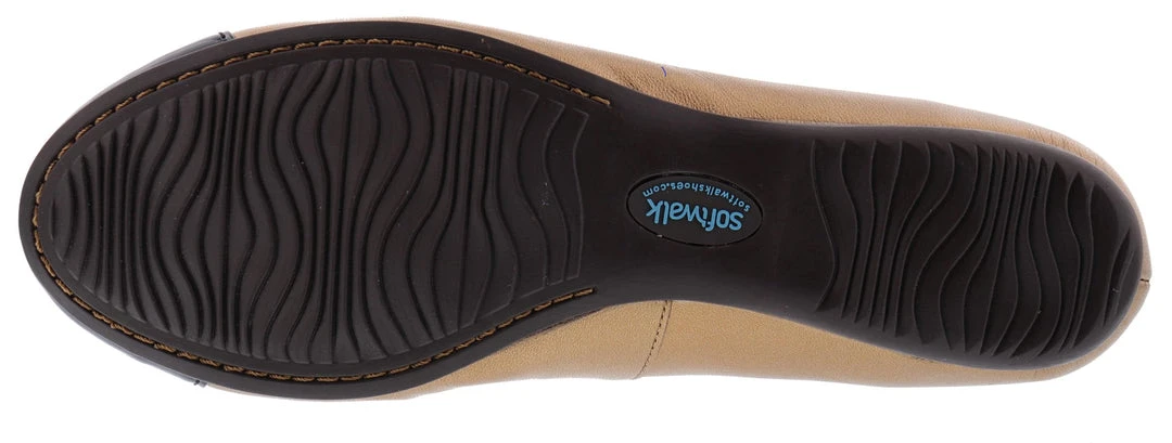 The SoftWalk Napa is an incredibly comfortable ballerina style with a low-profile cushioned footbed that includes a gentle arch support. The footbed uses both soft microfiber lining (with a colorful, fun pattern) and leather inserts for a secure and comfortable fit.