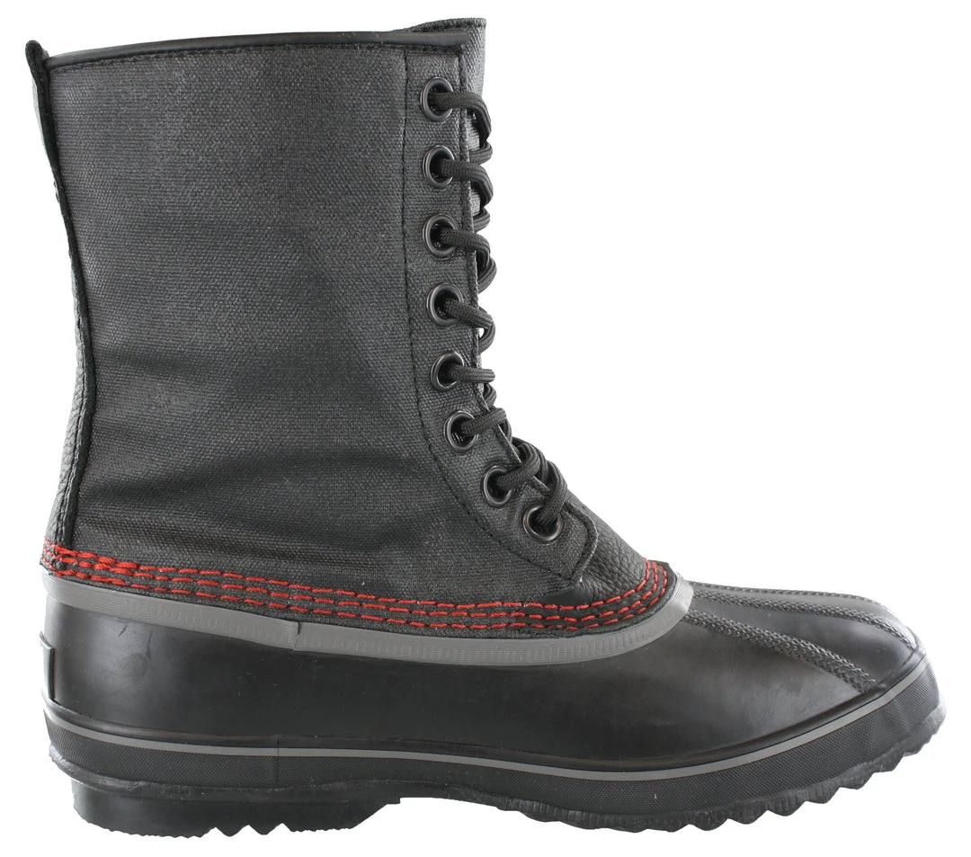 - Waxed canvas upper with leather trim on collar and back provides durability and all day comfort.