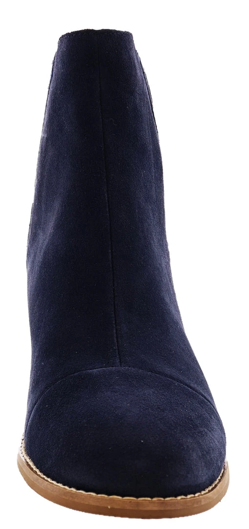Angular elastic-gore insets add a Chelsea-inspired element to this standby block-heel bootie.
