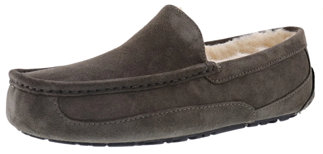 UGG mens house slippers With the look of a loafer and the softness of the slipper, the Ascot is our everyday go-to (and #1 best seller). Best cushioned house slippers a rubber sole means it can go both indoors and out, so you can slip it on for mornings at home, weekend plans, or casual office days. Best foot support house slippers Sheepskin Lining Vetted through extensive, industry-leading processes to ensure only the highest quality sheepskin makes the cut, delivering the signature feeling of UGG.