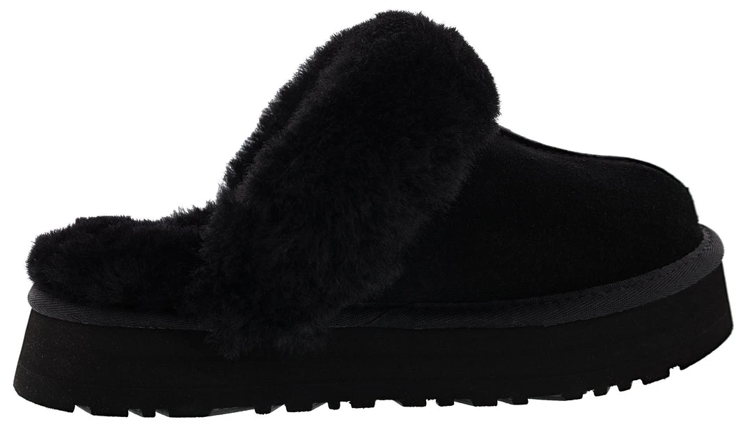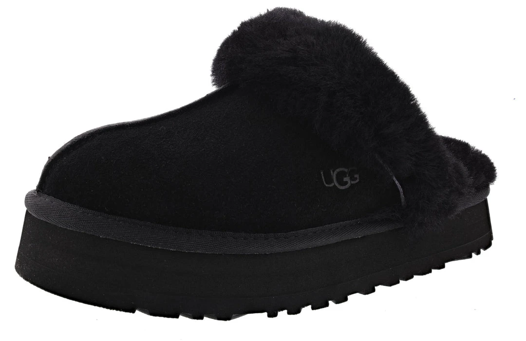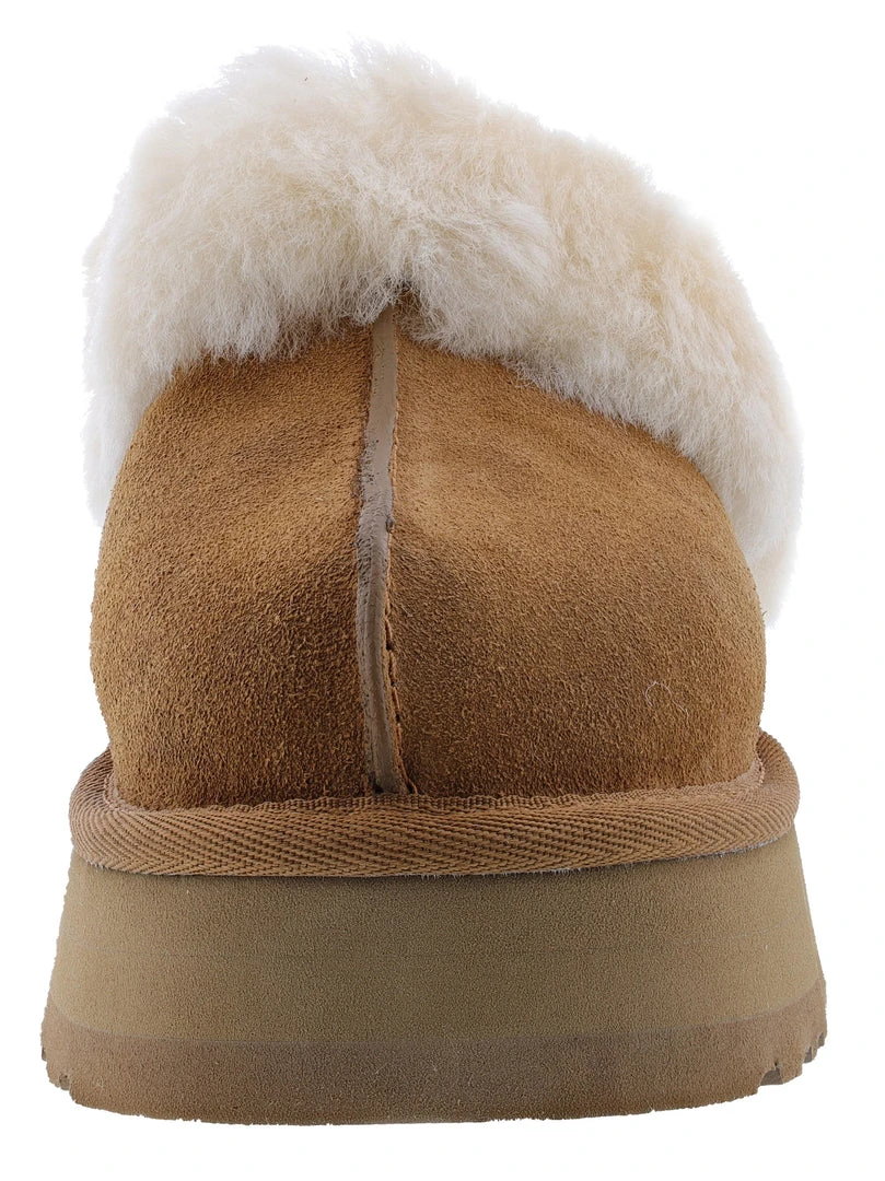 UGG Women’s Disquette Platform Slip On Slippers a platform sole for outdoor wear and coolest house slippers with all-day cushion. Best female house slippers with a signature sheepskin and suede. this women’s UGG house slippers style adds a playful statement to all your favorite outfits– try pairing with jeans or a flowy midi dress.Â