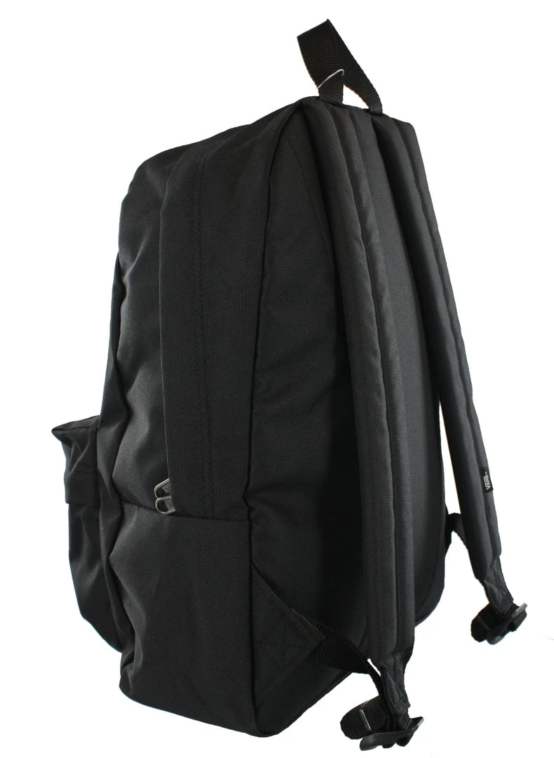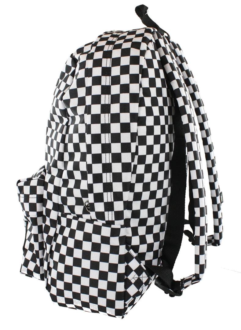 The Vans Off The Wall backpack is a 100% polyester. Vans checkered backpack and black Vans backpack features one large main compartment with a laptop sleeve (fits most 15″ laptops), a front zip pocket with an organizer for quick access, and straight-cut padded shoulder straps. Measuring 16.5 L x 12.75 W x 4.75 D inches, it has a 22-liter capacity.